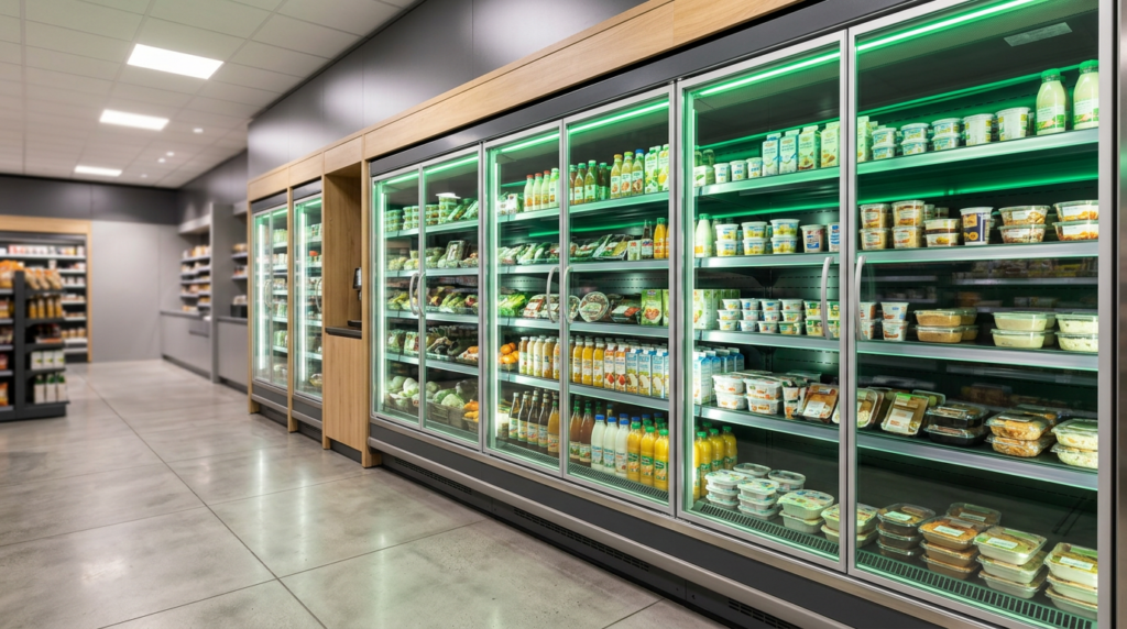 - arrow_forwardGeschlossene Kühlmöbel mit Glastüren einsetzen — spart allein schon 30–40 % Kühlenergie gegenüber offenen Regalen