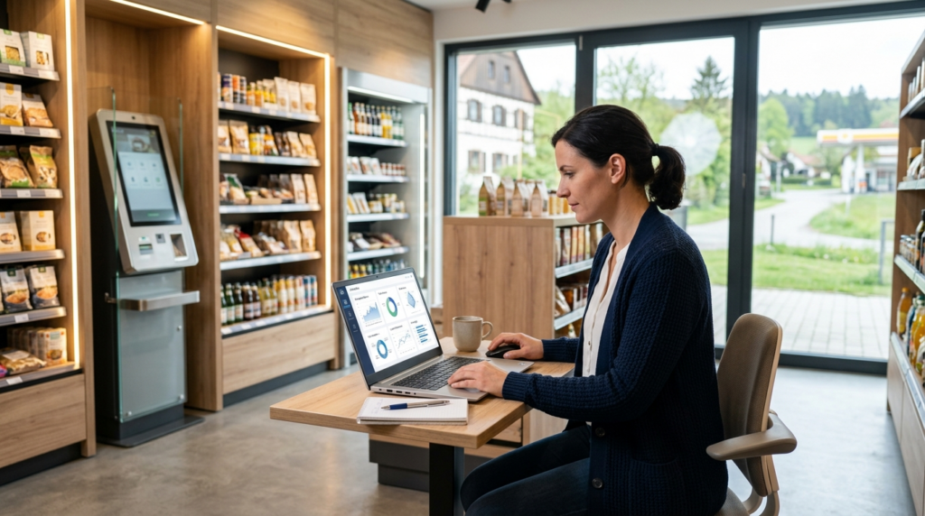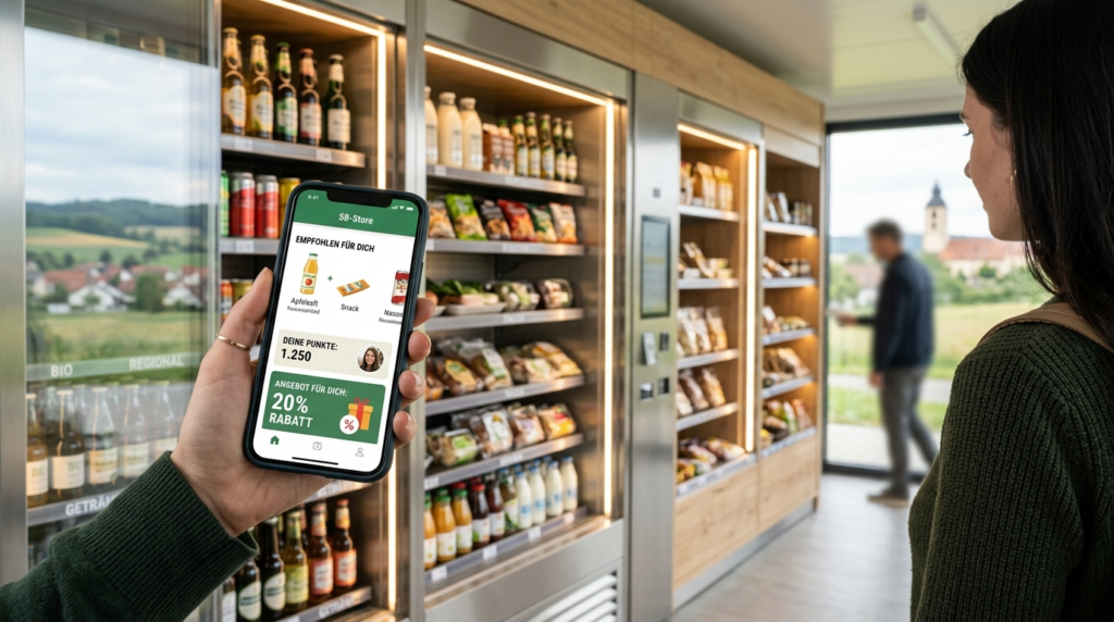 Ein SB-Dorfladen in der Nähe von Ulm, den ich beraten habe. 75 Quadratmeter, 900 Produkte, rund 180 Stammkunden. Der Betreiber hat eine einfache Store-App eingeführt — Kosten: 3.500 Euro einmalig, 150 Euro im Monat. Die App zeigt Tagesangebote, sammelt Treuepunkte und schickt freitags eine Push-Nachricht mit dem Wochenangebot.
